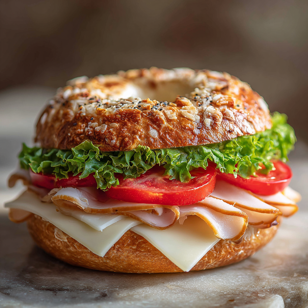 Turkey slices, butter, Emmental "french" Cheese, Lettuce, Tomato, Mayonnaise.