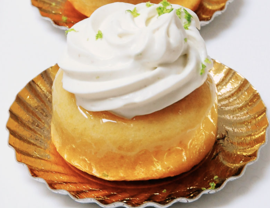 Our Baba ô Rhum is soft, fluffy, and delicately soaked in a light vanilla syrup — completely alcohol-free so everyone can enjoy it.