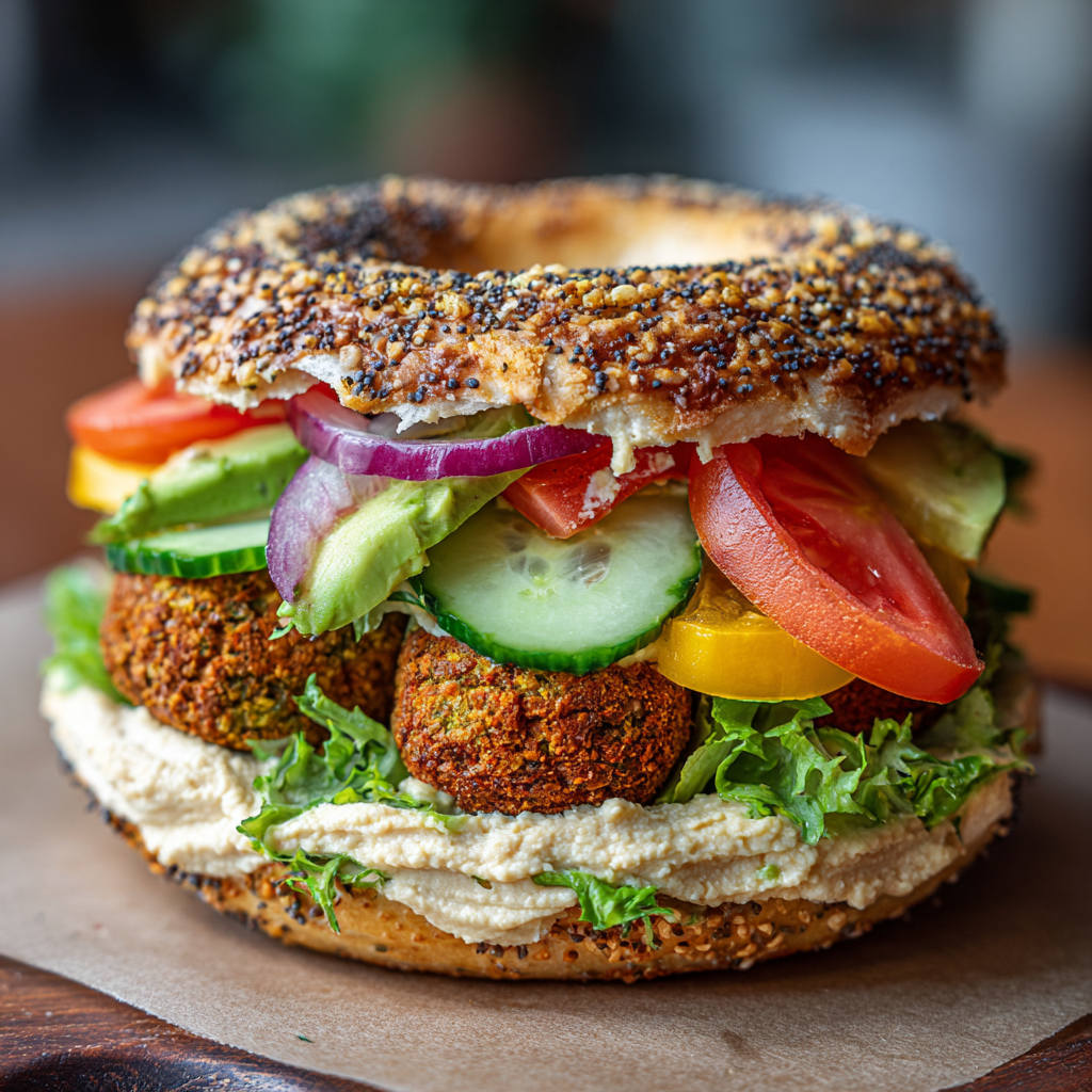 Falafel, Hummus, Lettuce, Tomato, Avocado.
