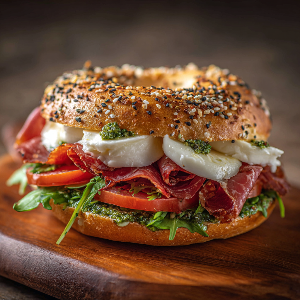 Pastrami, Cream Cheese, Mozzarella, Lettuce, Tomato, Pesto Sauce