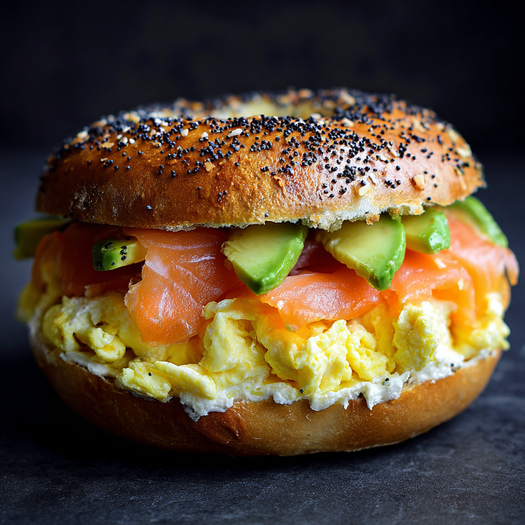 Smoked Salmon, Cream Cheese, Avocado, Scrambled Egg, Cheddar.